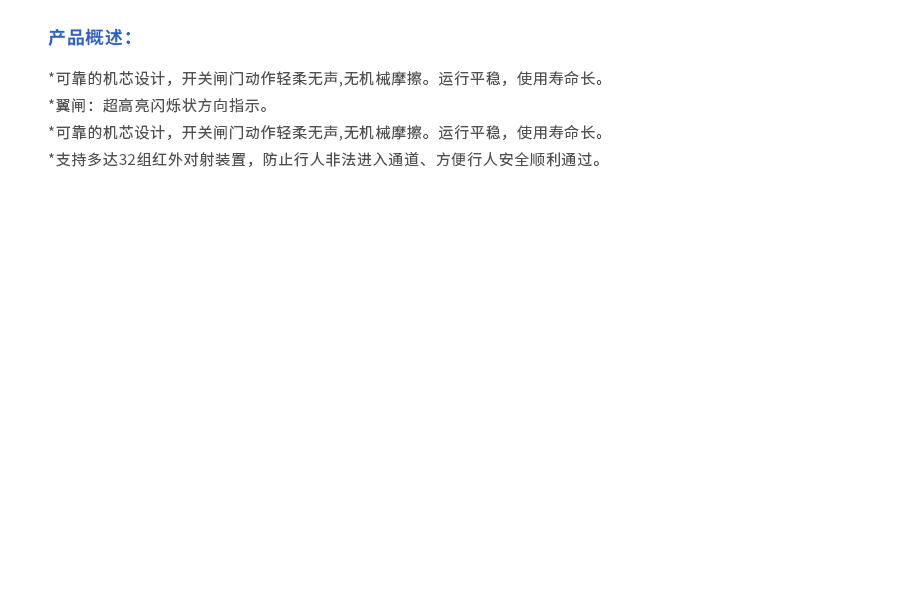 支持多達(dá)32組紅外對(duì)射裝置,防止行人非法進(jìn)入通道、方便行人安全順利通過(guò)