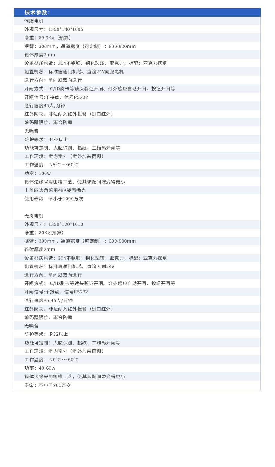 配置機(jī)芯:標(biāo)準(zhǔn)速通門機(jī)芯、直流無刷24V