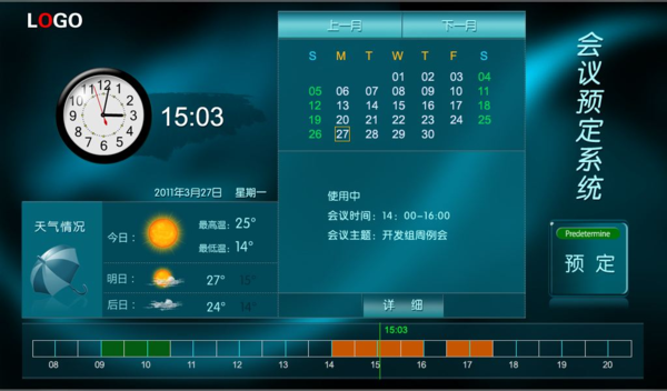 隨著社會(huì)的發(fā)展,會(huì)議預(yù)約管理系統(tǒng)在近年來呈現(xiàn)高速發(fā)展,但是各種等級(jí)層次不齊?,F(xiàn)代辦公會(huì)議室是組織的公共資源,會(huì)議室及其附屬的設(shè)備構(gòu)成召開會(huì)議的基礎(chǔ)環(huán)境。廣州朗歌公司以提高會(huì)議效率為焦點(diǎn),以會(huì)議全過程管理為理念,開發(fā)了會(huì)議預(yù)定管理系統(tǒng)產(chǎn)品。會(huì)議室預(yù)約管理系統(tǒng)的目標(biāo)是為會(huì)議的準(zhǔn)備提供便捷的服務(wù),實(shí)時(shí)動(dòng)態(tài)的將會(huì)議室預(yù)定信息,傳遞到每個(gè)會(huì)議室門口、大廳及樓梯口等公共通道的顯示屏上,實(shí)現(xiàn)會(huì)議信息發(fā)布引導(dǎo)功能為會(huì)議的召開提供順暢環(huán)境。